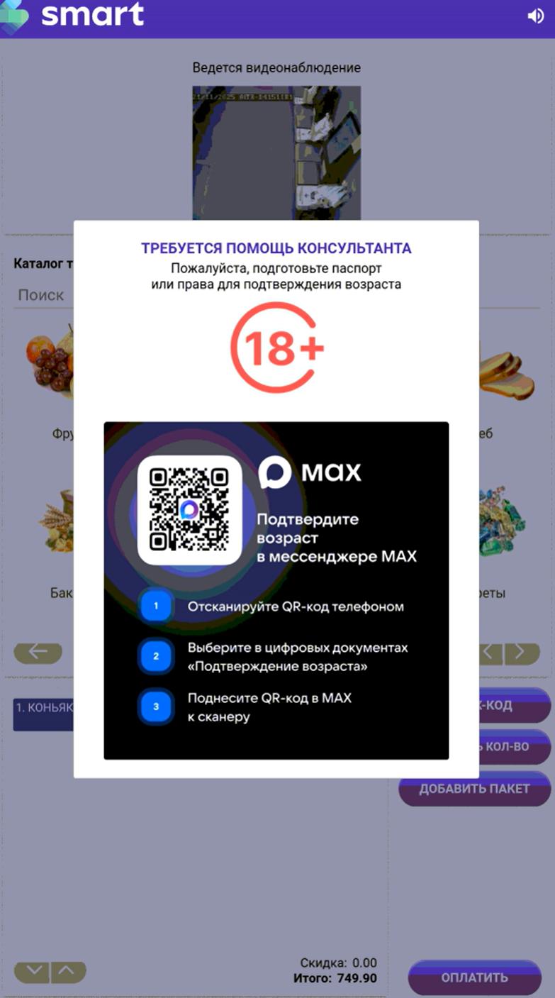 Для включения функционала подтверждения возраста через меседжер MAX нужно отсканировать на каждой КСО настроечный код сканера: