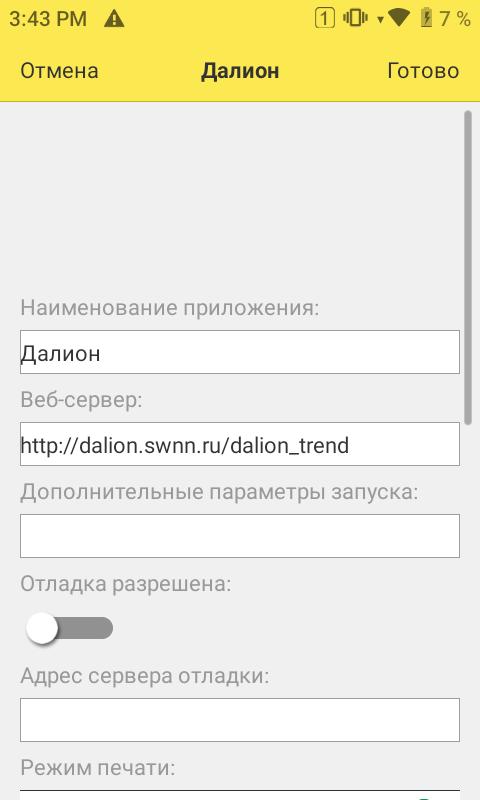 3. В приложении заполняем следующие поля:
