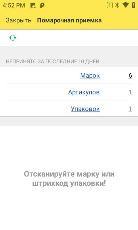 На экране приемки видим кол-во НЕпринятого товара сгруппированного по Маркам, артикулам или Упаковкам.