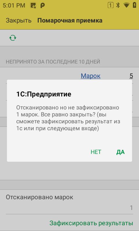 Если кнопка Зафиксировать результаты не нажали, при выходе получите Предупреждение. НЕТ - не выходить, ДА - выйти и сохранить сканирование.