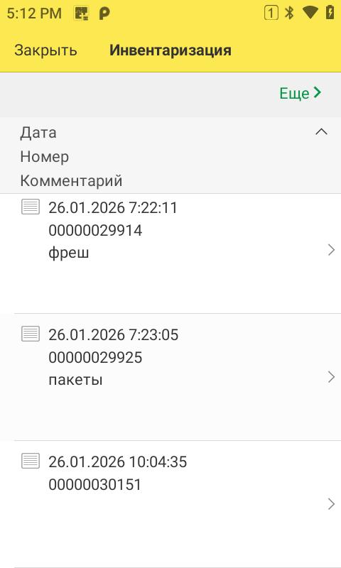 Видим список не проведенных документов Инвентаризация Смарт.