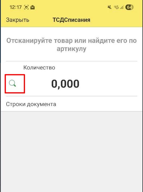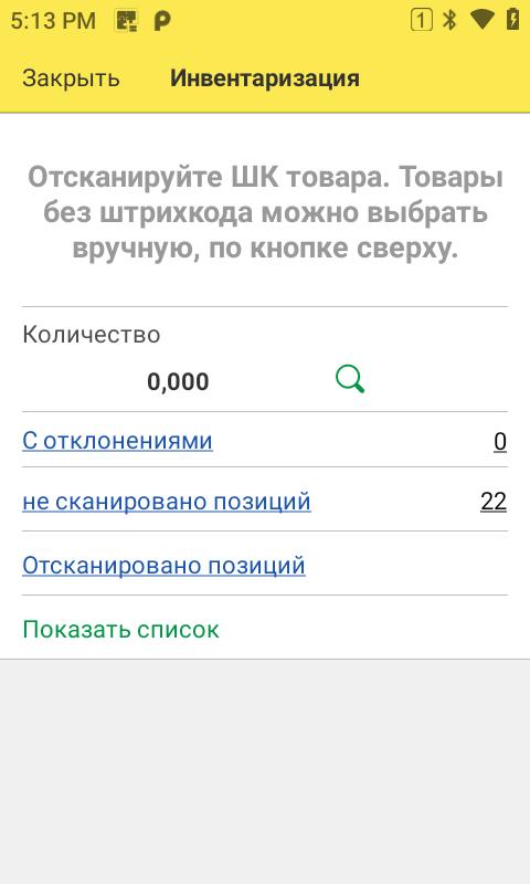 Переходим в свод документа. Терминал готов сканировать коды товара.