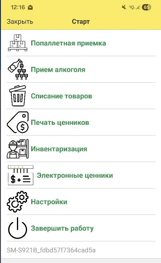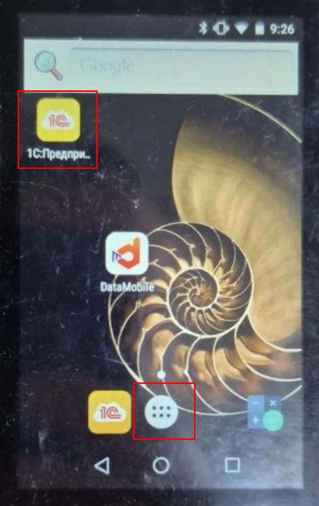 Для открытия 1С на ТСД нужно нажать на значек с главного экрана или меню приложения