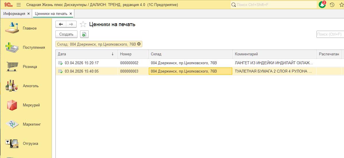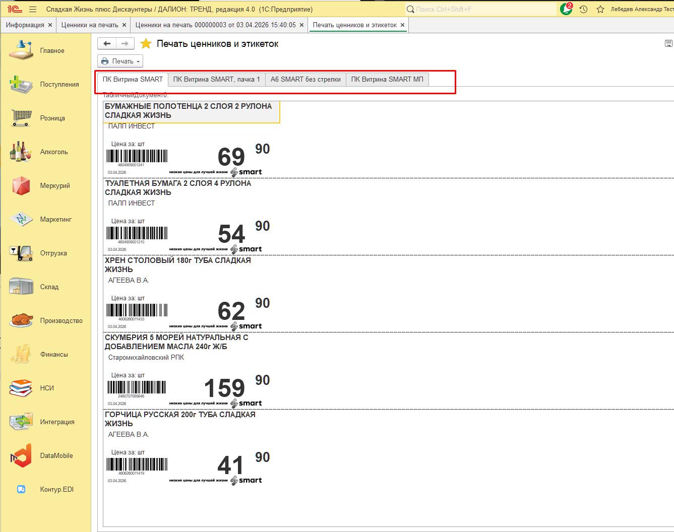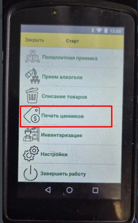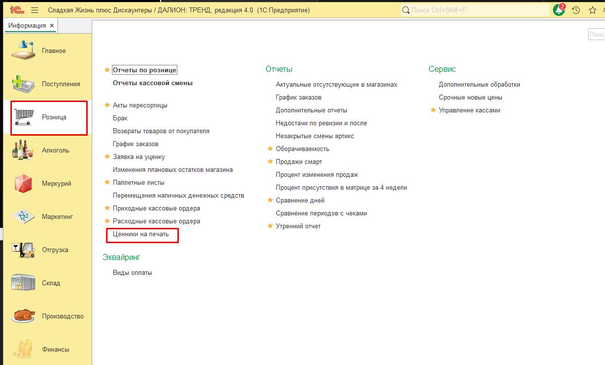 Для перехода в режим печати ценников Выбираем