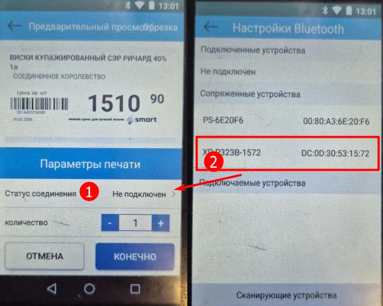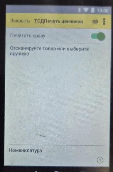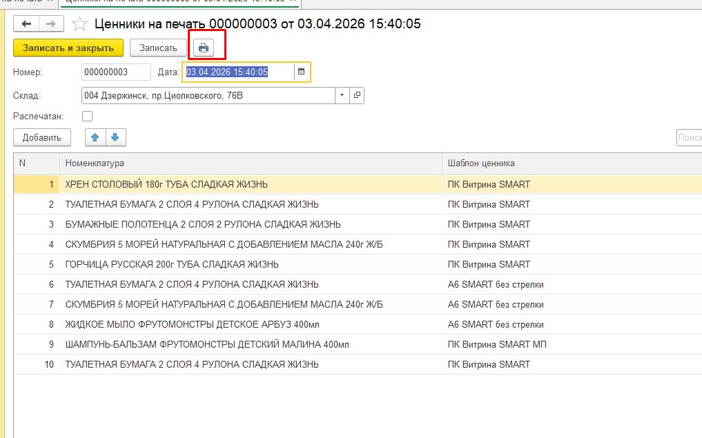 Печать ценников по списку товаров