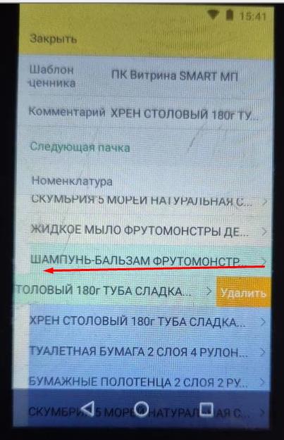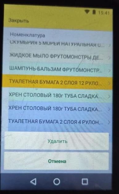 Удалить лишний товар можно удерживая пальцем область экрана с ненужным товаром или махом справа налево