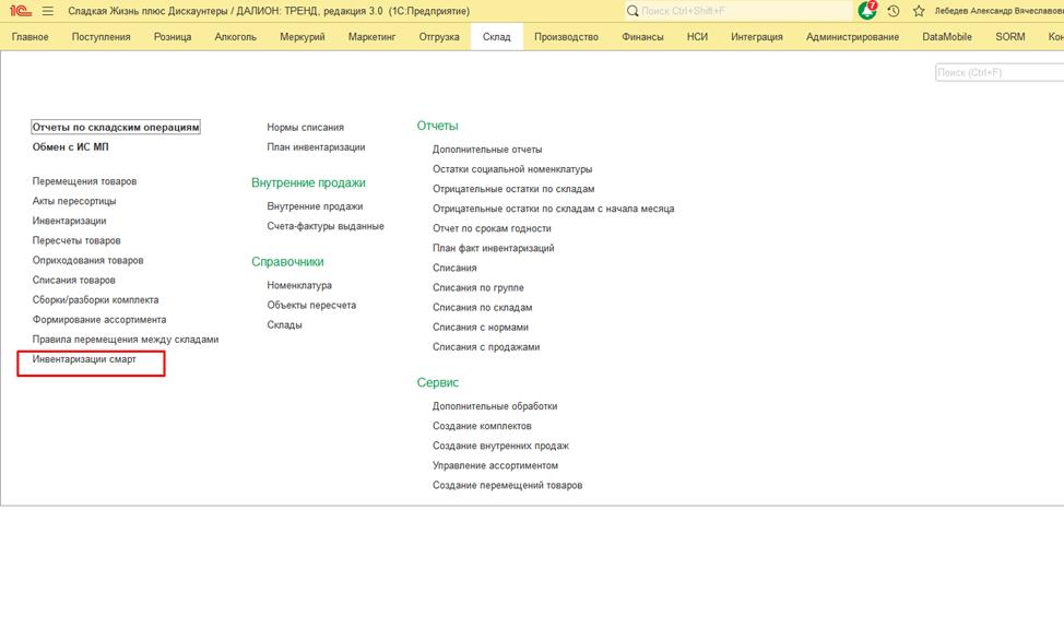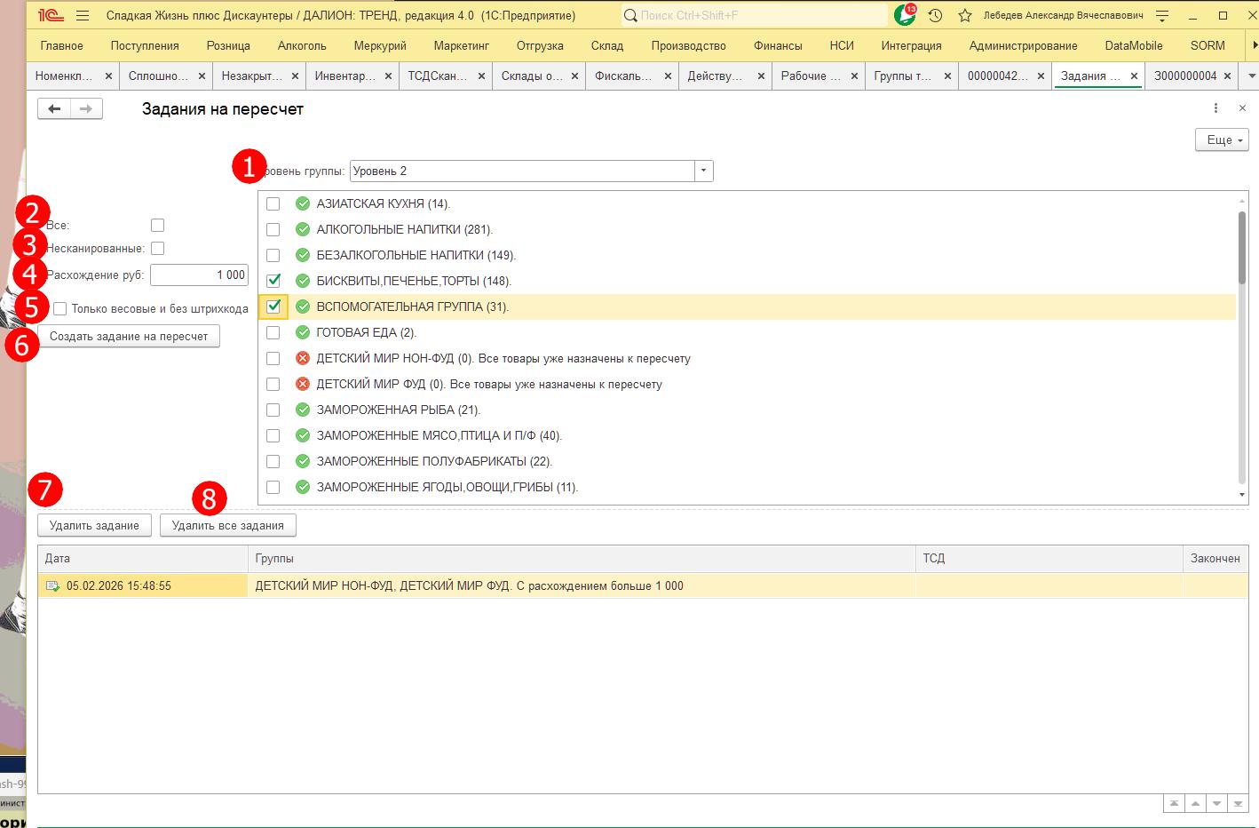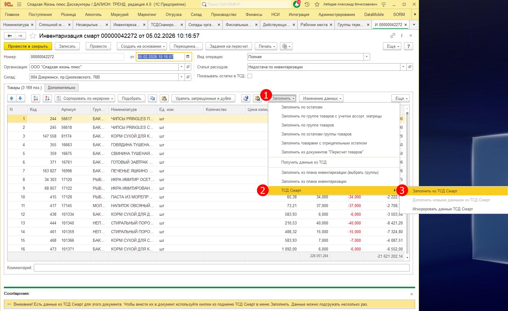 - Для гарантированного результата рекомендуем заносить результаты инвентаризации в 1С Далион сразу же после пересчета.
