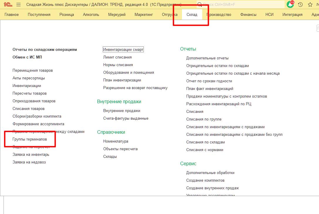 Далее на ТСД выбранной группы открываем 1С и ТСД сразу готовы к проведению инвентаризации.