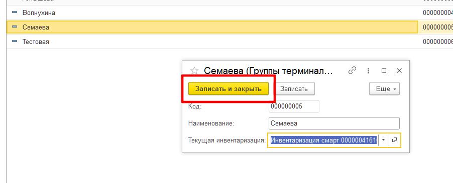 Выбираем созданный ранее документ Инвентаризации и нажимаем Записать закрыть