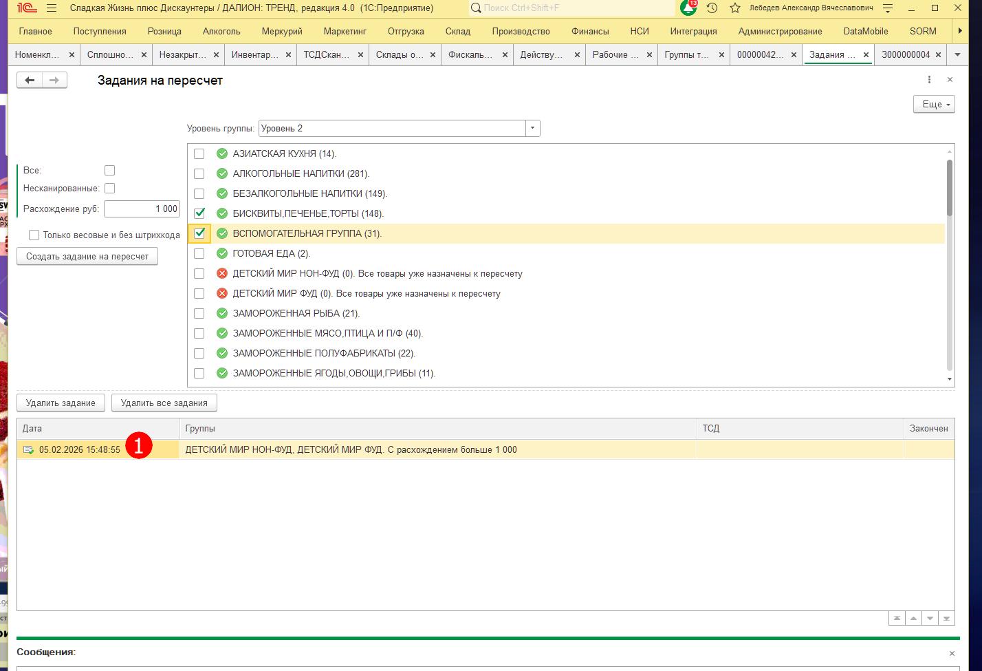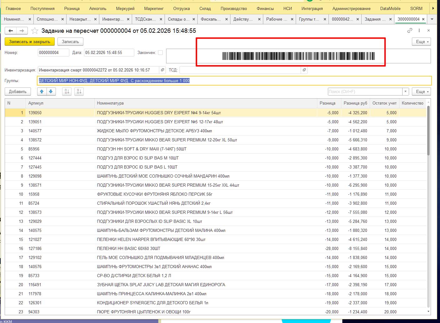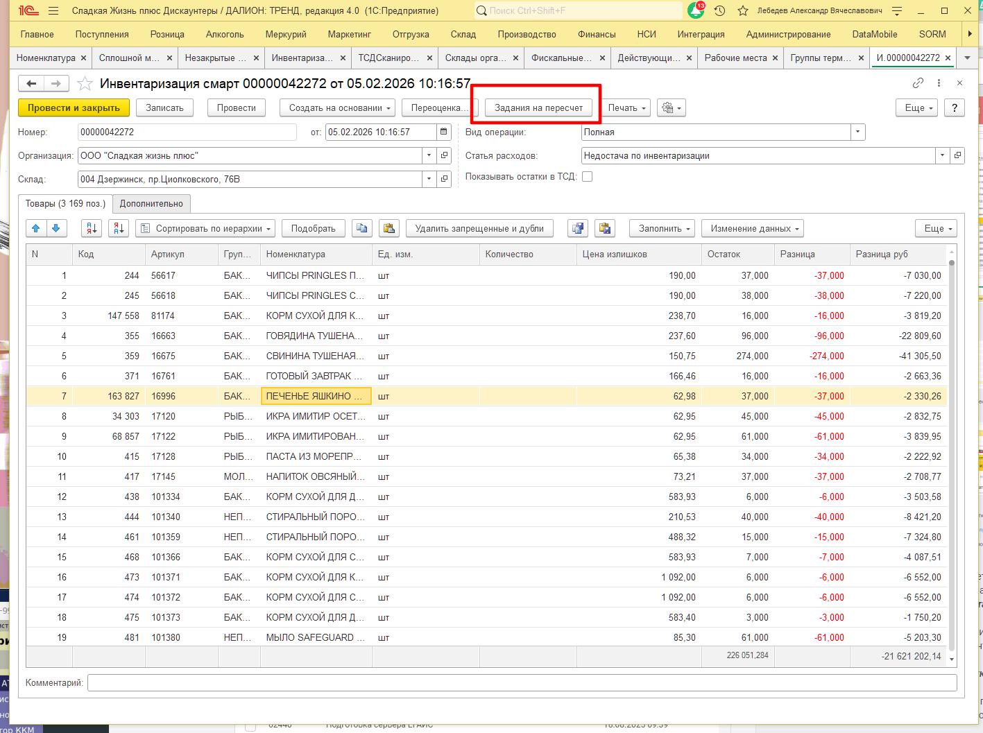 - Если с момента пересчета товара до занесения результатов инвентаризации в 1с была закрыта хотя бы одна из касс, результаты пересчета считаем недействительными, пересчет необходимо повторить.