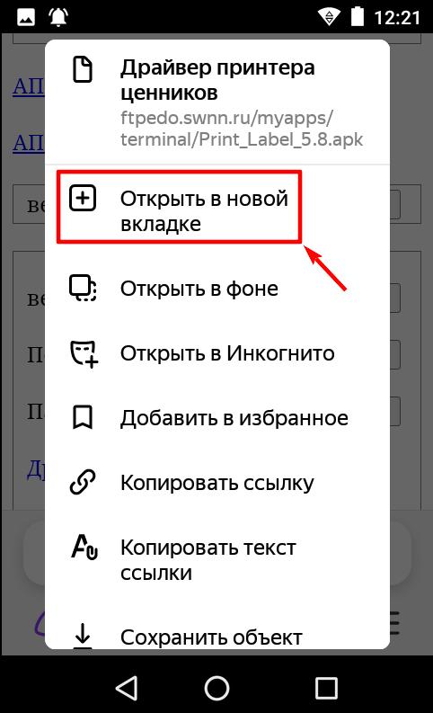 Если закачка не началась, удерживаем текст ссылки до возникновения окна и выбираем: