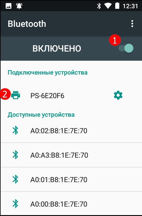 4. Включаем Bluetooth и подключаем принтер через сопряжение (НАЗВАНИЕ ПРИНТЕРА МОЖЕТ НЕ СОВПАДАТЬ):