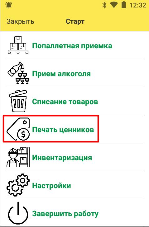 6. Переходим в 1С и открываем сервис "Печать ценников":