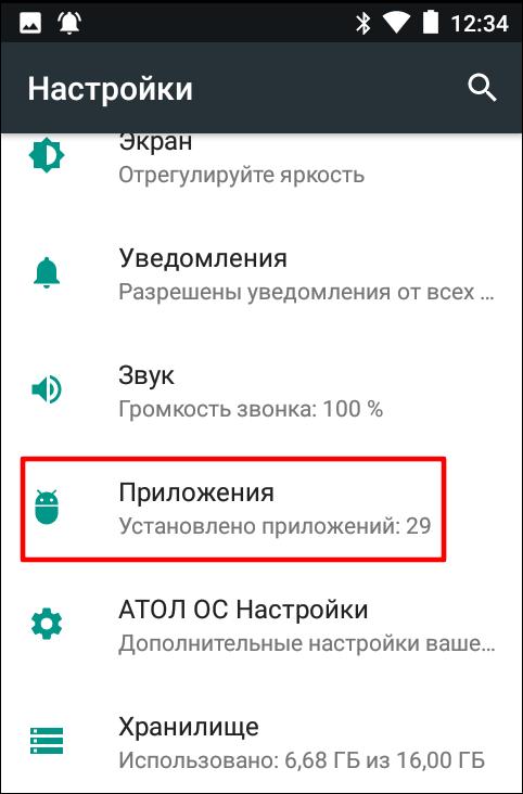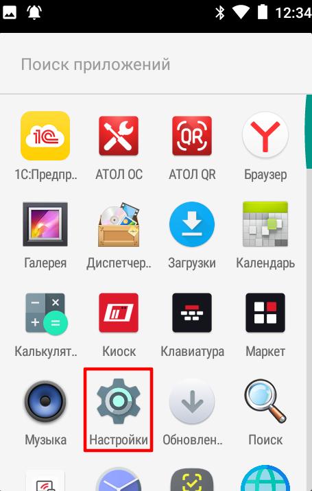 5. Переходим в общие настройки устройства для выдачи дополнительных прав приложению 1С: