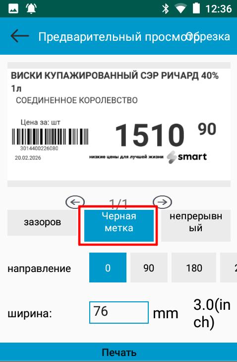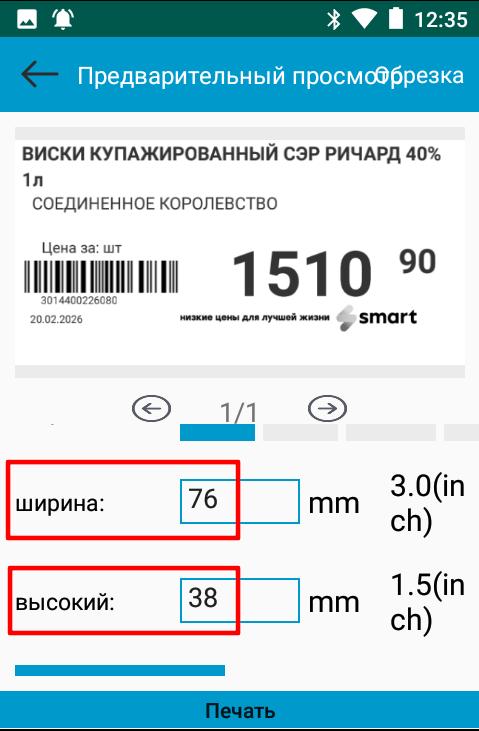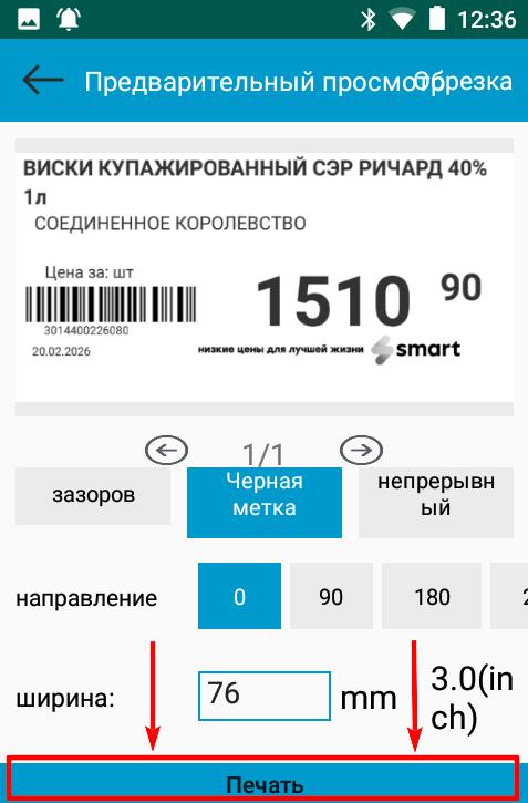 7. Сканируем штрих-код ценника, выбираем программу для печати и настраиваем шаблон ценника: